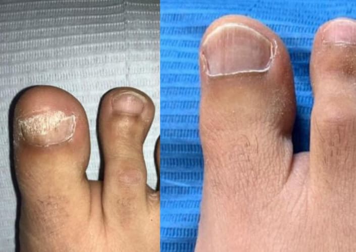 შემთხვევა 1 - მამაკაცის ფეხმა აქტიურად დაიწყო ლპობა ფრჩხილის სოკოს გამო.