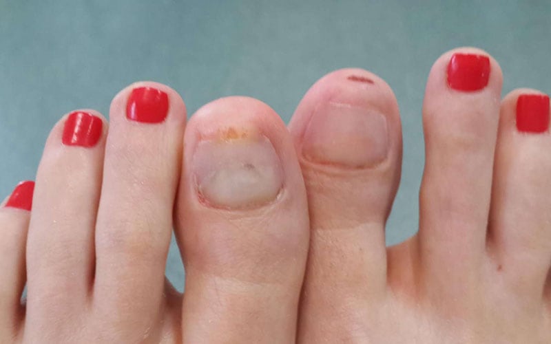ერთხელ ფეხის თითი დავიზიანე კომოდის კუთხეში დარტყმით. მტკიოდა, მაგრამ არ შემიმჩნევია. მეორე დღეს ჩემი ფრჩხილები ოდნავ შეშუპებული ჩანდა. ყურადღებაც არ მიმიქცევია - გელის ლაქი გამოვიყენე და სილამაზის სალონებში დავდიოდი. როდესაც ფრჩხილის ლაქი მოიხსნა სალონში, აღმოვაჩინე ფრჩხილი, რომელიც ძლიერ დაზიანდა სოკოთი. არ იყო ლამაზი სურათი.