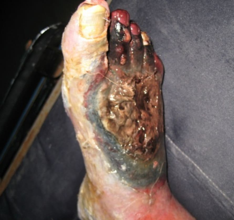 შემთხვევა 1 - მამაკაცის ფეხმა აქტიურად დაიწყო ლპობა ფრჩხილის სოკოს გამო.