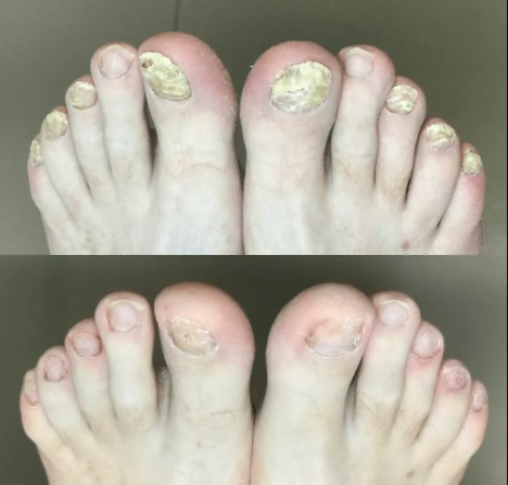 ჩემთან უფრო ნელა მიდიოდა საქმე რადგან ბევრად ცუდი მდგომარეობა მქონდა, ონიქომიკოზის ბოლო სტადია მქონდა. ჯამში, ორი თვე დასჭირდა რომ წყეული სოკოსგან გავთავისუფლებულიყავი.