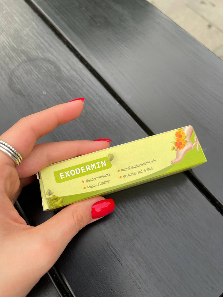 Este un produs incredibil, vă sfătuiesc pe toți, așa am obosit de ciupercă, nu poți merge pe plajă, nu poți purta pantofi deschiși. Dar, după ce am folosit „Exodermin” timp de patru săptămâni, starea s-a ameliorat și acum nu a mai rămas nicio urmă de ciupercă.