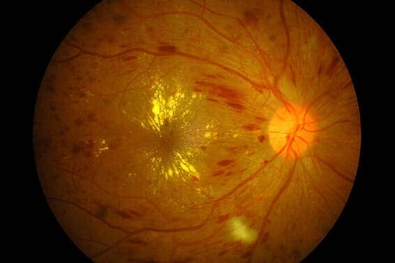 1. Diabetic retinopathy, retinal injury that can cause bleeding behind the eye and from the retina. Often appearing in people with type 2 diabetes, it can gradually lead to total blindness at any time.