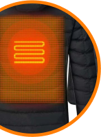 Gli elementi riscaldanti in fibra di carbonio, noti per essere sicuri, efficaci e stabili, sono anche morbidi e non influiscono sul comfort di chi li indossa.