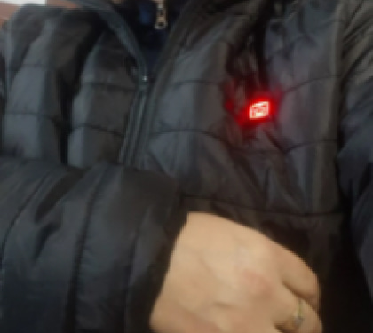 Collegare la batteria esterna al cavo nella tasca interna della giacca.
