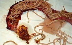 Les parasites provoquent des troubles intestinaux et appendiculaires aigus. Les lésions tissulaires et la réduction de l'immunité provoquent une inflammation.