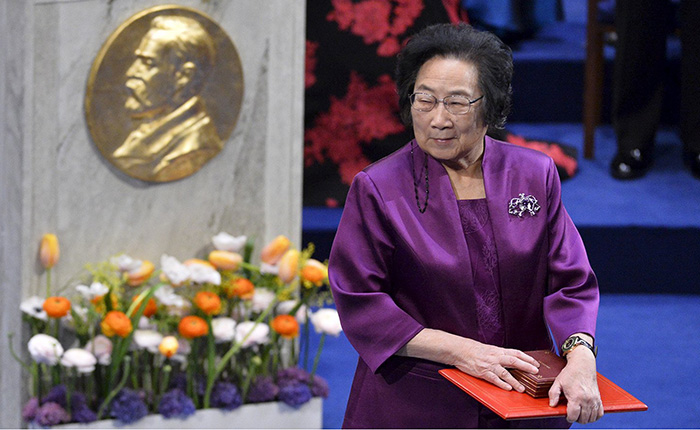 На фото: Пані Юн Чанг отримує Нобелівську премію з фізіології та медицини за відкриття, яке перевернуло уявлення про лікування опорно-рухового апарату.
