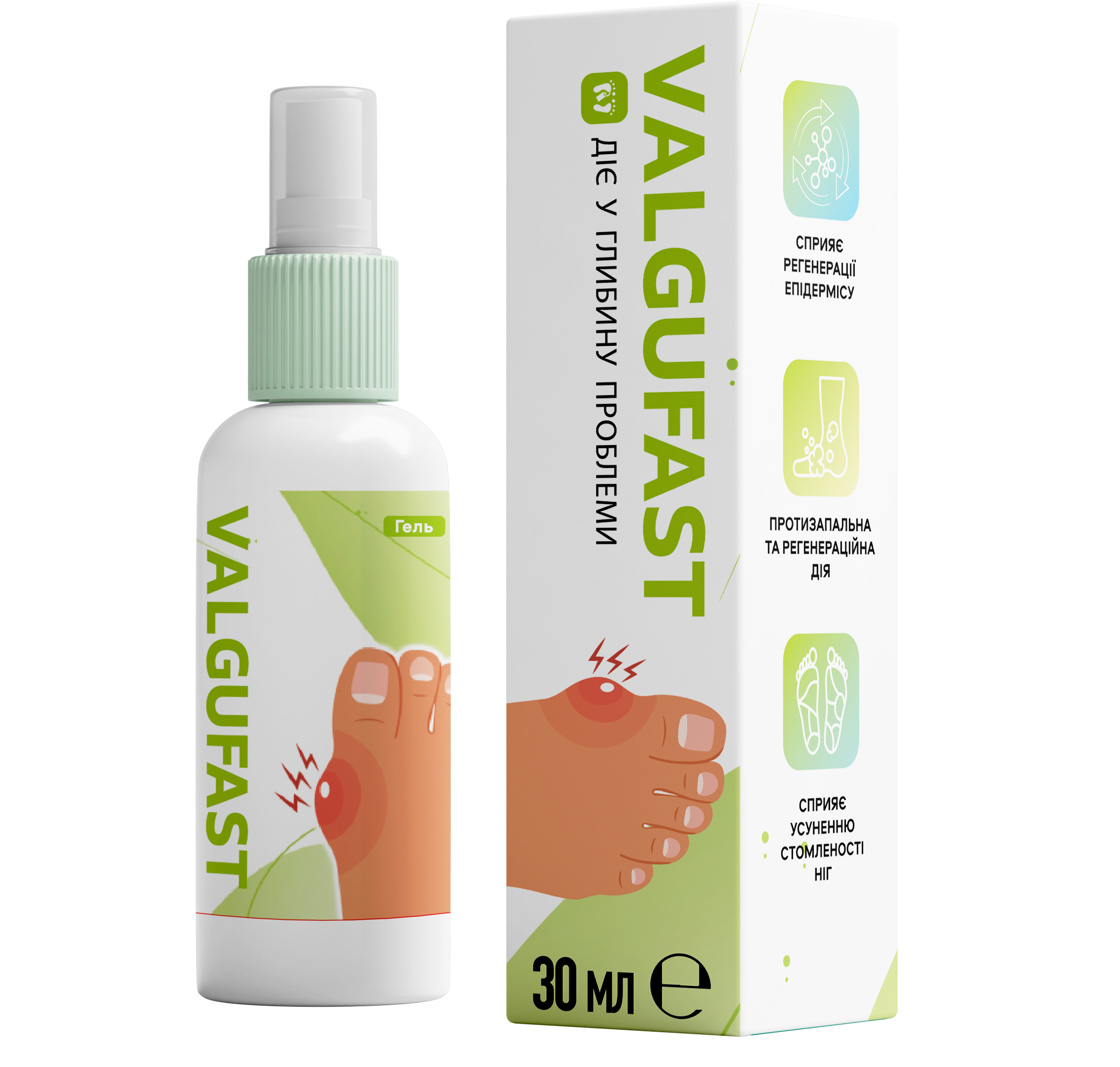 Завдяки такому комплексному впливу Valgufast зупиняє деформацію стопи та усуває “кісточку”.