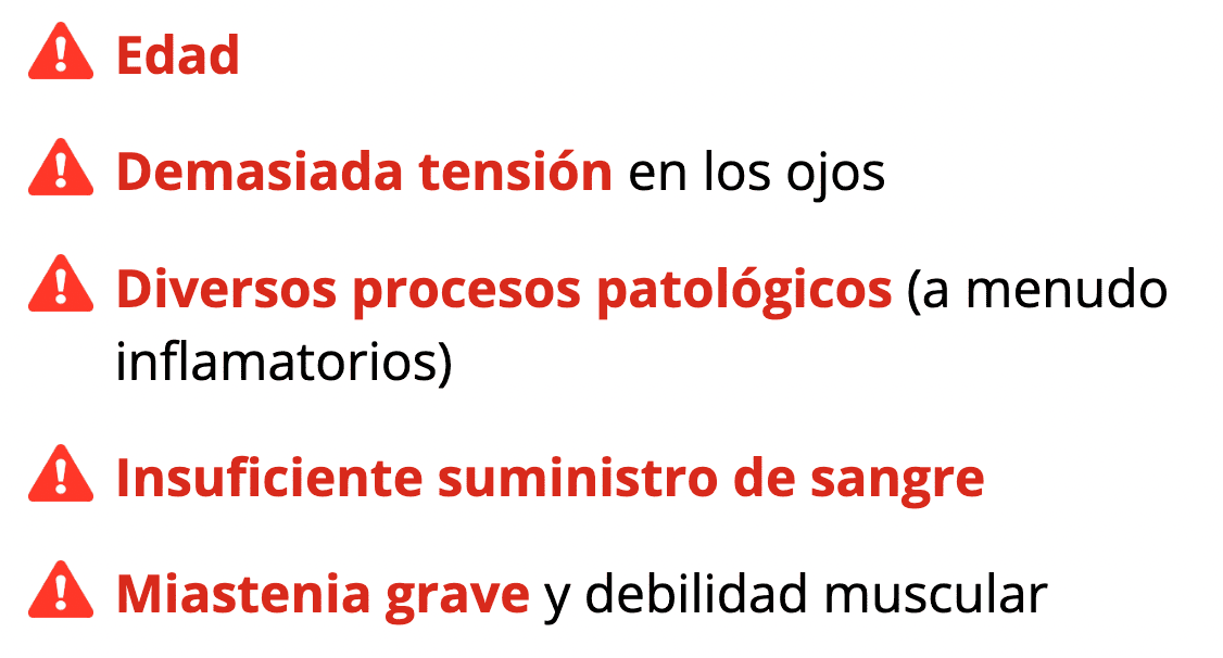 - El trastorno del músculo ocular da como resultado una compresión insuficiente o excesiva del globo ocular.