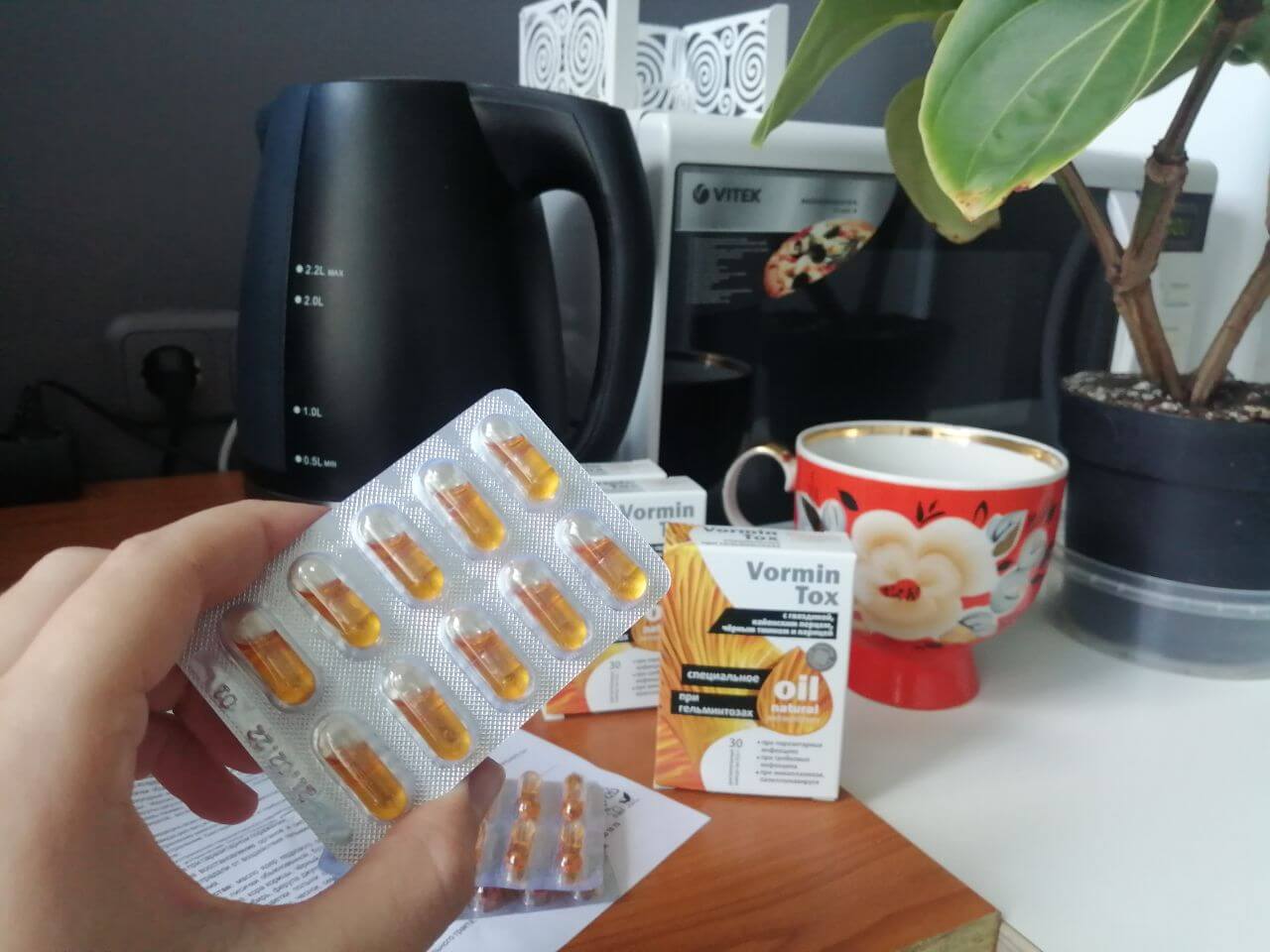 — «VorminTox» необходимо принимать утром, в обед и вечером.