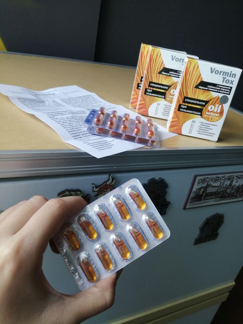 Это антипаразитарное средство "VorminTox", которое, к слову, раздается СО СКИДКОЙ для всех жителей СНГ, но об этом позже. Создан VorminTox при участии нашего Института Паразитологии и группы независимых молодых учёных. Мы параллельно занимались работой над двумя десятками средств от паразитов. Но в процессе разработки было выявлено, что именно "VorminTox" максимально эффективен.