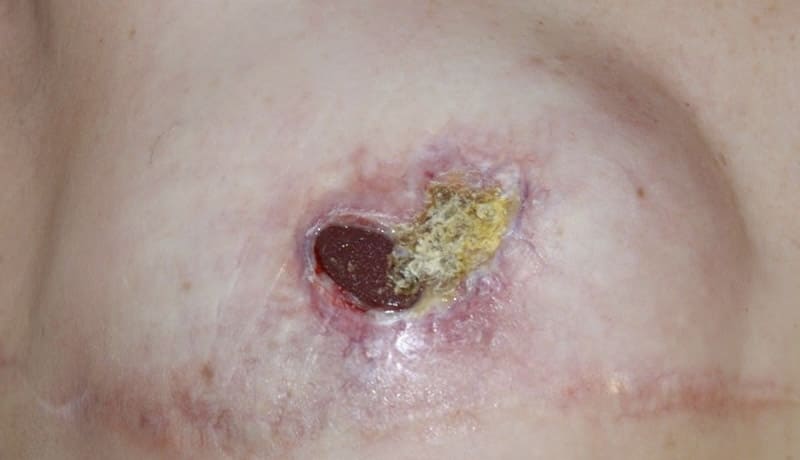 İmplant yerleşmedi ve iltihaplanma başladı, bu da meme ucunun kaybına yol açtı.