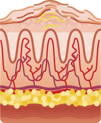 Lo strato superiore della pelle si chiama epidermide. La sua composizione si basa su cheratoniciti, che vivono in media 28 giorni. In caso di psoriasi i cheratoniciti si riproducono in maniera più veloce, non riescono ad arrivare alla fase matura e vivono solo 4-5 giorni!