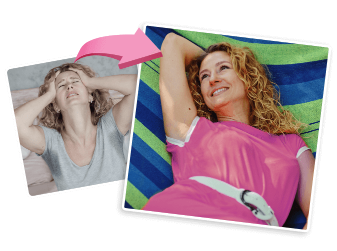 Selbst wenn Sie bereits HET (Hormonersatztherapie), Kräuter, „Wunder"-Pillen oder Diäten ausprobiert haben, die aber keine Ergebnisse brachten – jetzt haben Sie eine 100%ige Linderungsgarantie.