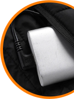 Collegare la batteria esterna al cavo nella tasca interna della giacca.