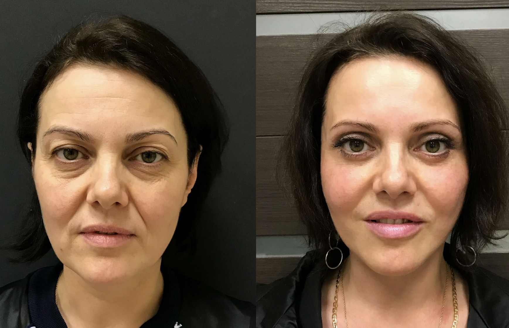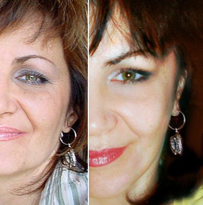 "Kleopatra" istifadə etdikdən üç həftə sonra. Dəyişikliklər artıq aydın görünür! Qırışlar demək olar ki, yox oldu və gözlərimin altındakı dəri torbaları sovrularaq yox oldular.