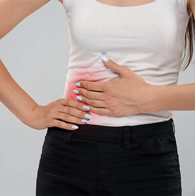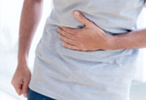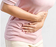 Abdominal pain and swelling.