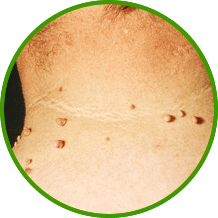 - durva bőrfelület, amely a felszínen kidudorodik,
