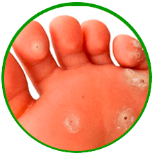 amelyek a talpon vagy a lábujjakon jelennek meg