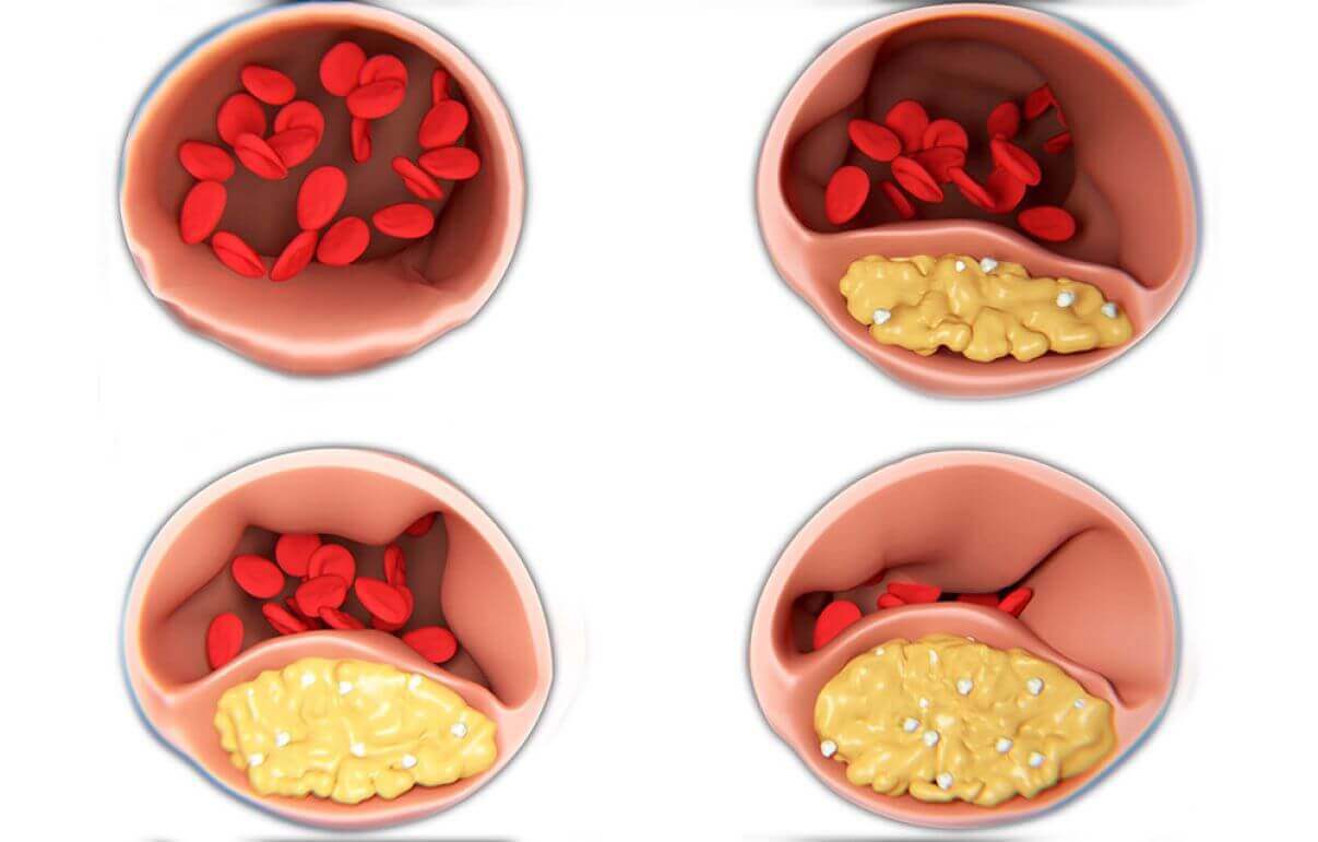- Атеросклероза. Съдовете спират да работят правилно: малките съдове са напълно запушени, а големите съдържат много холестеролни отлагания.