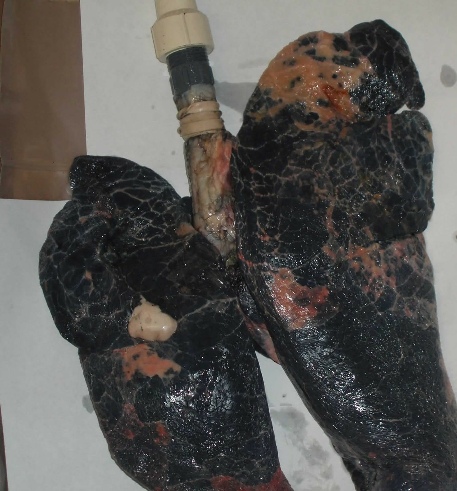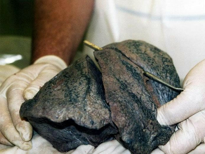 Sigara içen birinin akciğerinin postmortem görüntüsü (Patolojik Anatomi Arşivi'nden alınmıştır)