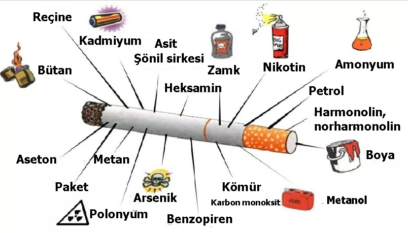 Bir sigara tiryakisi her gün yüzlerce toksinle zehirlenir: nikotin, benz(a)piren, siyanür, arsenik, formaldehit, hidrosiyanik asit ve diğerleri. Ayrıca radyoaktif maddeleri emer: polonyum, kurşun, bizmut. Sigara içenlerin %89'u er ya da geç akciğer kanserine yakalanır. Çoğu, tanı yapıldıktan sonra bir yıldan kısa bir süre içinde ölür. Bu tür onkoloji her yıl yaklaşık 30.000 vatandaşımızın hayatını alır.