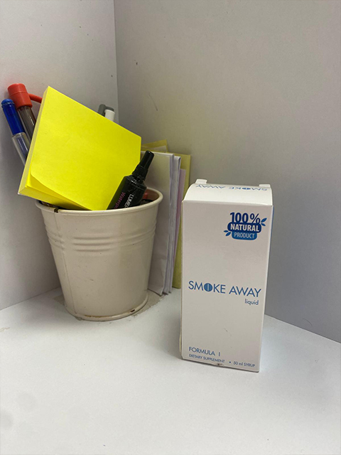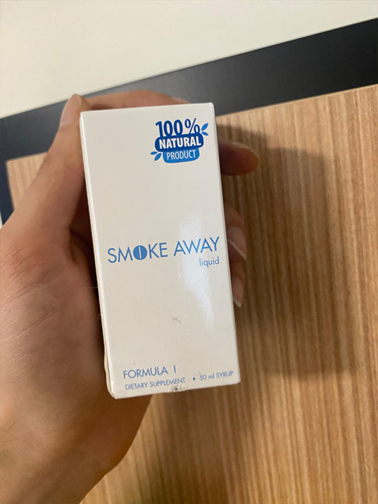 Bu formülün bileşiminin yalnızca doğal bitki bileşenlerine dayandığını yani hiçbir kimyasal içermediğini ve sağlığa zararlı olmadığını söylemek oldukça önemli. Ve tam anlamıyla 2020'de, bu formüle dayalı özel bir ürün olan Smoke Away üretilmeye başlandı. Kesinlikle orijinal ambalajın bir fotoğrafını buraya koymanızı rica ediyorum. Böylece insanlar sahte bir ürünle karşılaşmamak için ürünün nasıl göründüğünü görebilirler. Çünkü piyasada sahte ürünler ortaya çıktı.