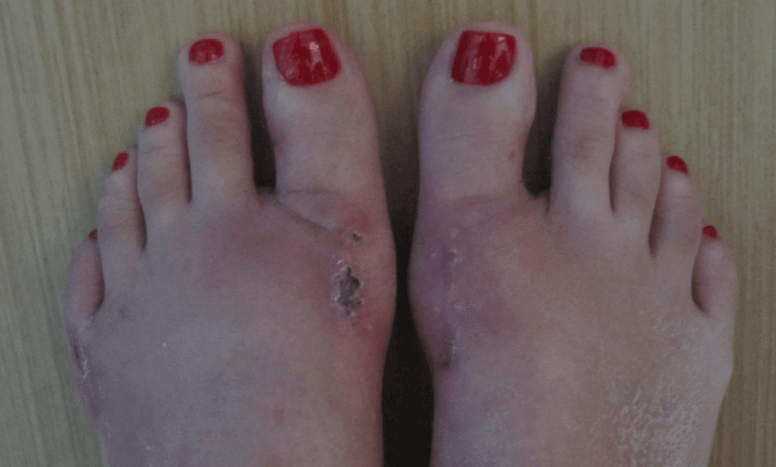 La enfermedad se acompaña de dolor y malestar en un estado de calma. Al moverse, el dolor se intensifica a veces, se vuelve muy difícil usar incluso zapatos cómodos.