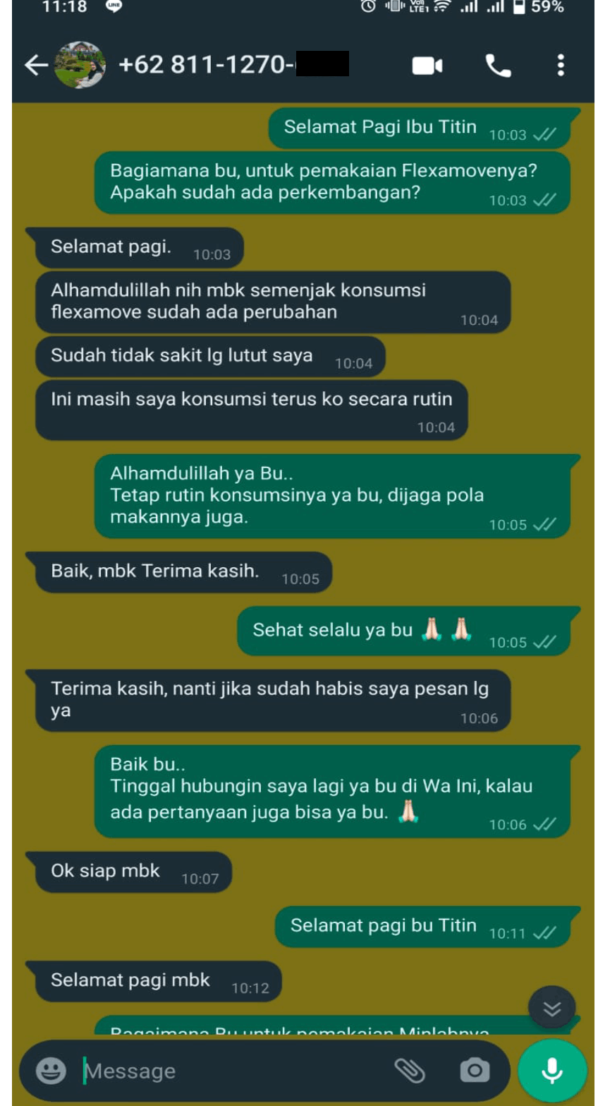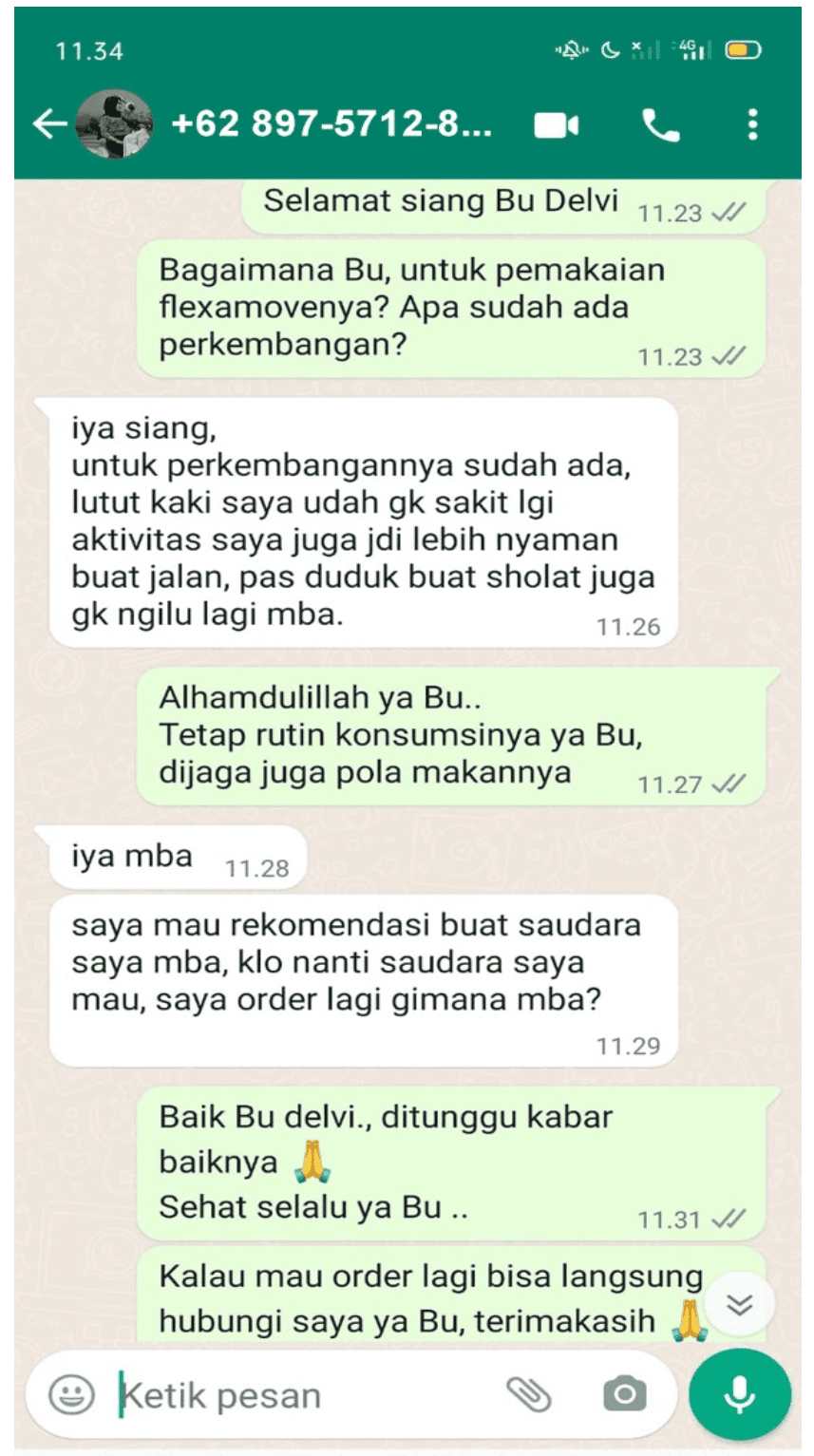 Suami saya sudah mencoba Umma, awalnya 2 bulan terakhirnya kakinya kaku tidak bisa berdiri, dah setelah menjalani terapi dan minum Umma, akhirnya ada perubahan. Setelah kami cek kembali ke dokter orthopedi, hasilnya sangat baik.