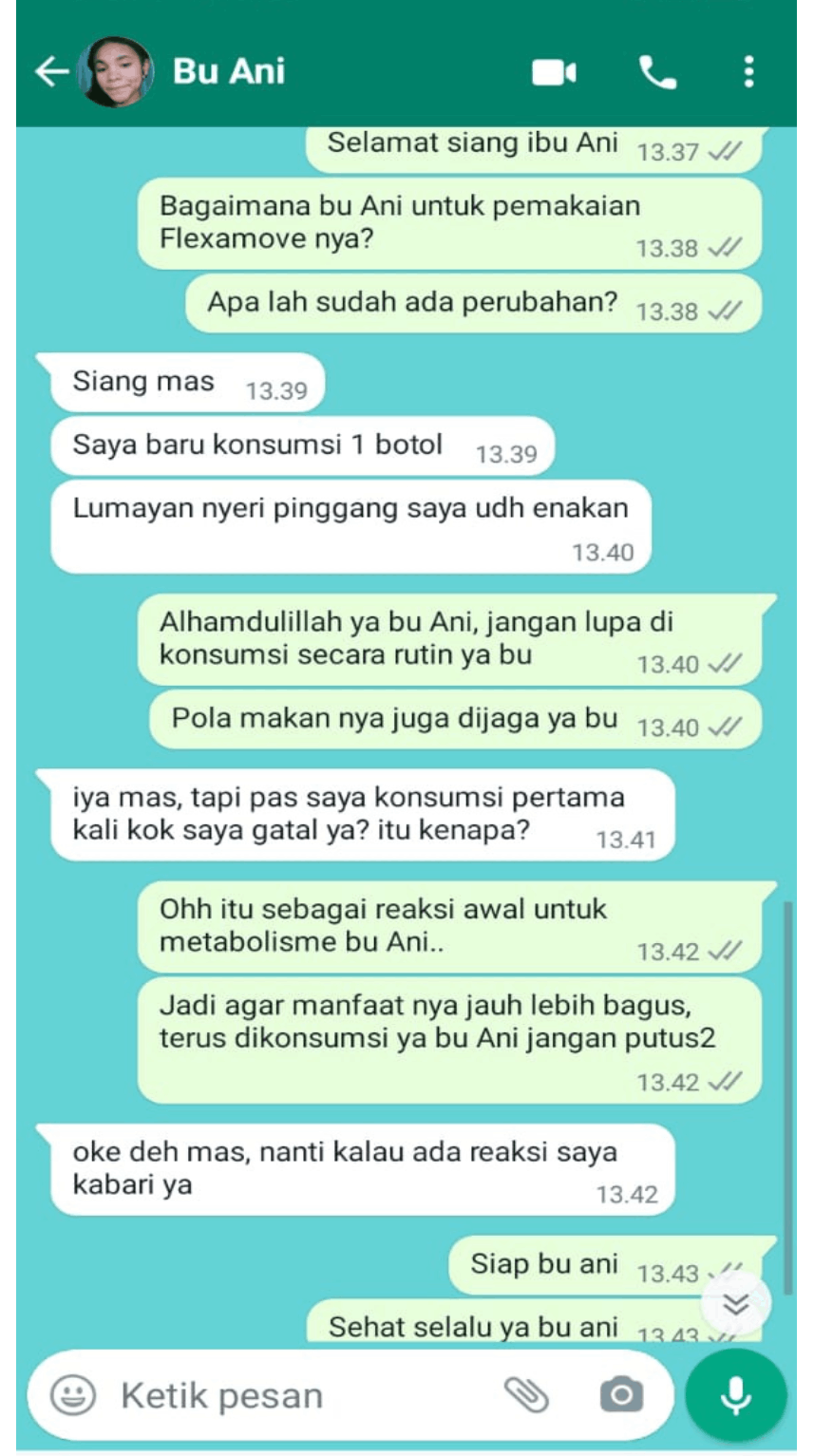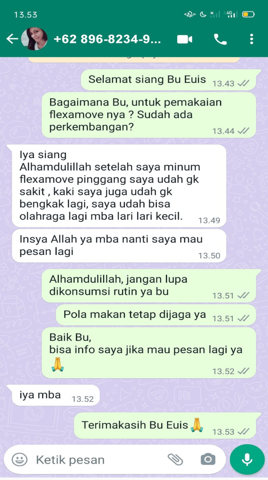 Obat herbal Flexaxmove bisa dikombinasikan dengan obat kimia dari dokter. Tapi, minumnya tidak boleh digabung, harus ada jeda minimal 2 jam. Usahakan anti nyeri diminum jika nyeri tidak bisa ditahankan, Umma sendiri sebenarnya sudah terkandung bahan alami untuk memulihkan artritis. Nyeri yang dialami itu karena peradangannya. Untuk informasi lebih jelas lagi, konsultan kami akan menjelaskannya pada saat pemesanan ya Bu. Untuk nomor telpon layanan konsultasi gratis sesudah pemesanan, tertera di box Umma .
