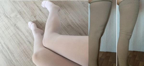 Am fost sfătuit să port lenjerie de compresie. Este îngrozitor: incomod, neatractiv și, în general, mă îndoiesc că este util. Compresia este slabă în partea inferioară a piciorului și foarte puternică sub genunchi. Ciorapii formează șanțuri. Canelura de sub genunchi strânge dureros piciorul. Ciorapii se întind și se rup în talie și sunt scumpi. Și la ce îmi folosesc? La urma urmei, am vrut să rezolv complet această problemă și să nu o ascund sub haine.